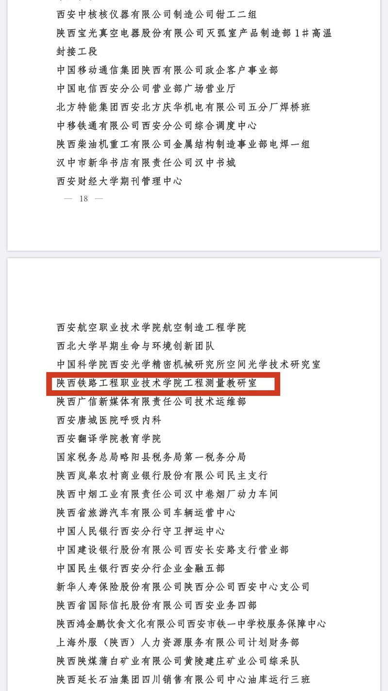 喜讯!工程测量教研室荣获陕西省“工人先锋号”称号
