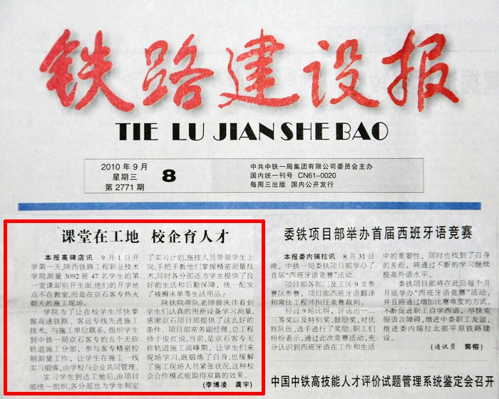 铁路建设报报道我系测量3092班现场教学情况