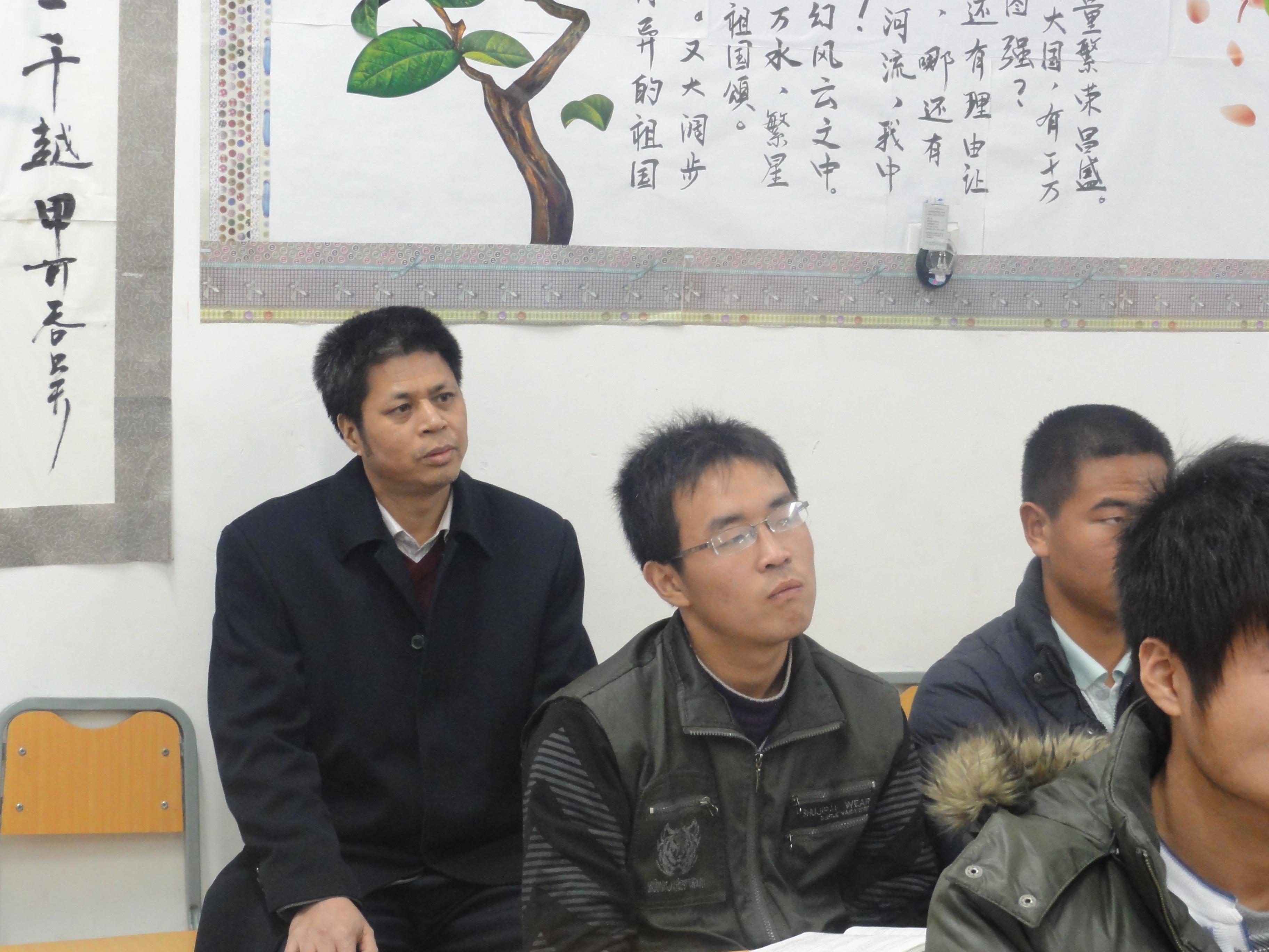 王闯副经理正在听取班级组织的主题班会