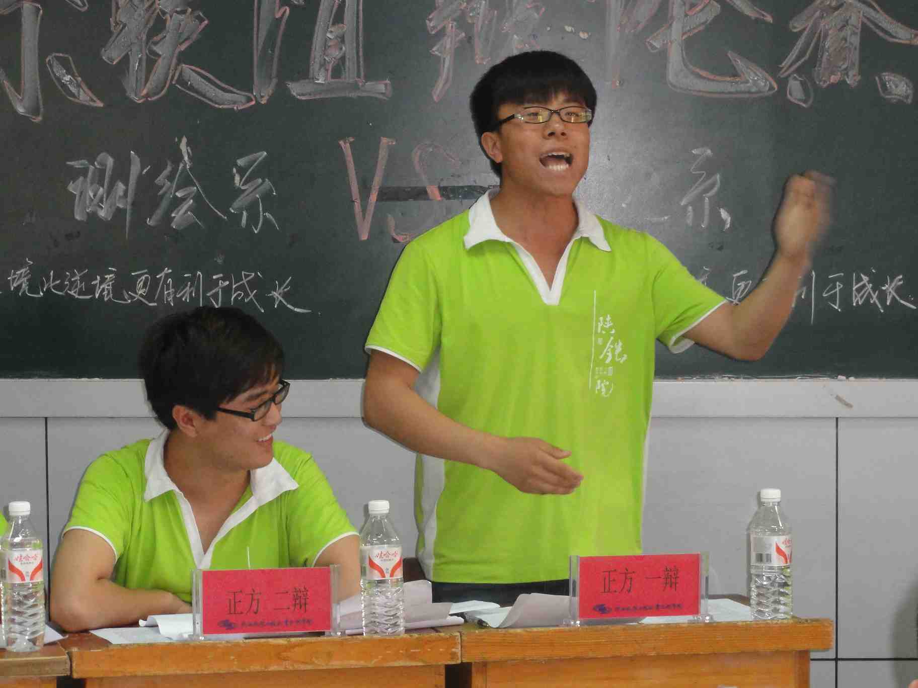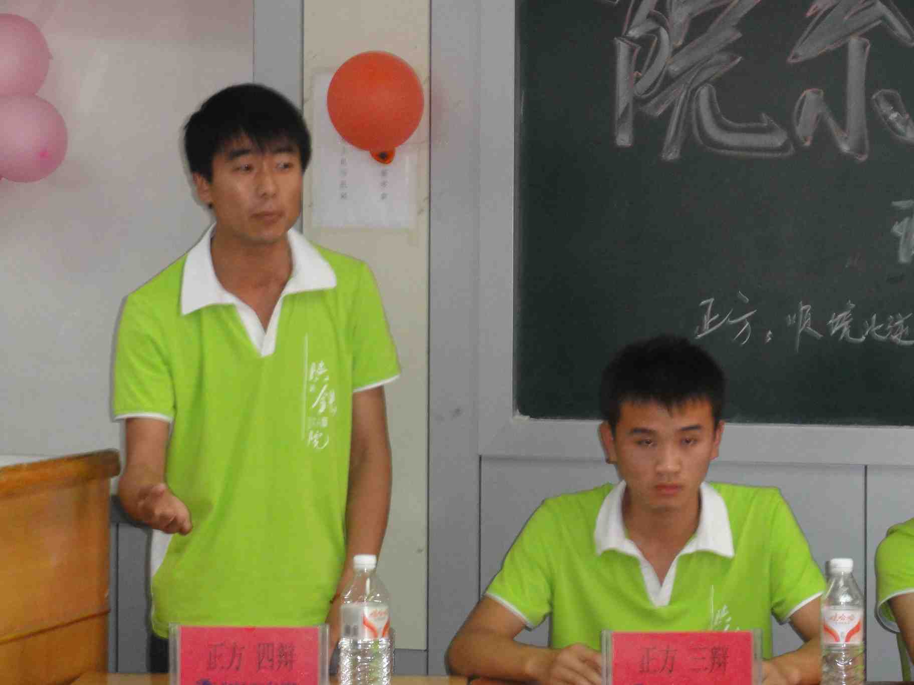 5月9日,由院团委主办、院员工会承办的“七系联谊”辩论赛决赛在B400教室举行。测绘工程系代表队经过前两轮的拼搏顺利进入决赛,与机电工程系进行了冠军的争夺。 在决赛中,我系代表队表现突出,每位辩手都展现出了良好的口才和心理素质,他们以柔克刚,借力打力,善于抓住对方弱点,使得每回赛现场气氛都异常活跃,迎来观众的阵阵掌声。经过几个回合的争夺,最终摘得桂冠,获得比赛的最终胜利,我系一号辩手卢斌同学也获得本次大赛的“最佳辩手”称号。一号辩手 卢斌二号辩手 李冬三号辩手 邓亚楠四号辩手 王斌我系代表队获得辩论赛冠军