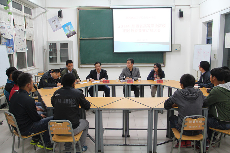 4月17日晚,在全院师生喜迎国家骨干院校建设验收之际,测绘工程系组织召开了2014年陕西省高等职业院校测绘技能竞赛动员大会,公司副经理焦胜军、教务处处长张修身、系主任兼党总支书记张福荣及参训选手参加了动员会。