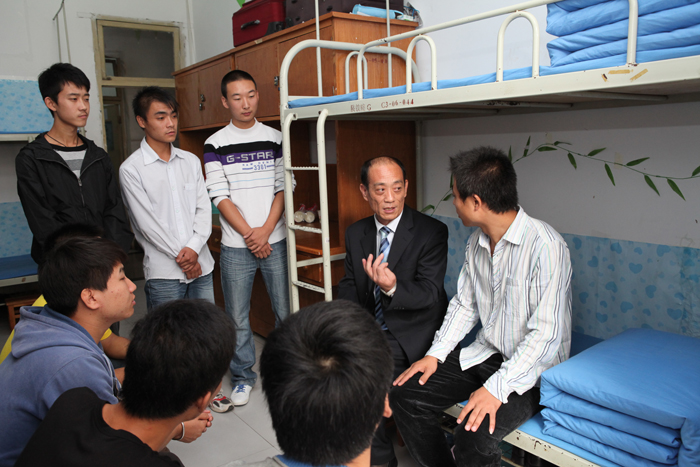 窦铁成走进测绘工程系员工公寓与员工们共话成才路