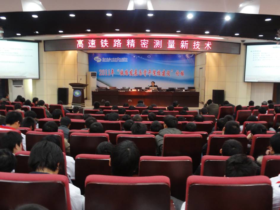 下午,赵教授为我系师生做了一场关于高速铁路精密测量新技术报告会。报告会由系主任张福荣老师主持,我系全体师生参加了本次报告会。赵教授以高速铁路测量为主线,从高铁精密工程测量的重要性、轨检小车铁路轨道测量系统、路基沉降/铁轨形变监测技术等五个方面为我系师生奉献了一场精彩的报告会。报告结束后,赵教授和我系师生进行互动交流,解答了我系师生提出的问题,赢得在座师生的好评。