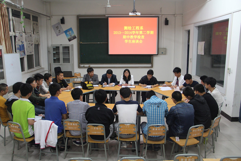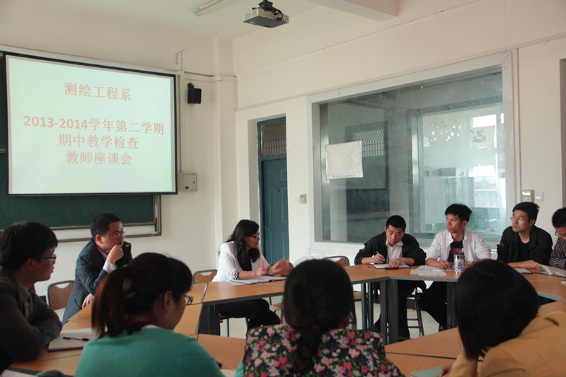 测绘工程系期中教学检查师生座谈会近日在S609顺利召开,系主任张福荣出席了座谈会,测绘工程系全体教师以及20名员工代表参加了座谈会。