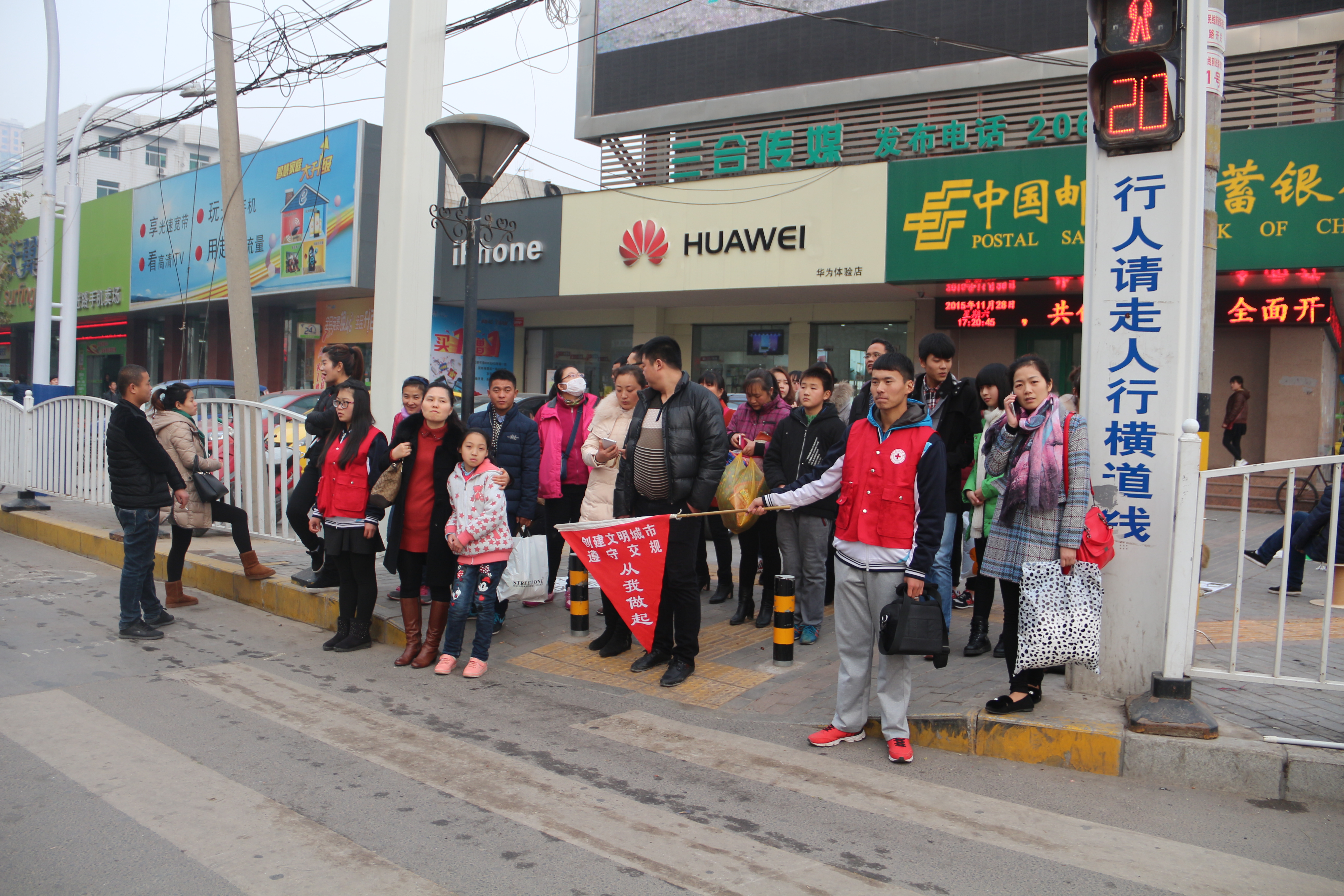 为积极响应渭南市创建全国文明城市,进一步提升道路交通社会化管理水平,共同营造有序、安全、畅通、和谐的道路交通环境,11月28日,陕铁院红十字志愿服务队组织80余名志愿者们走上街头,举行了“创建全国文明城市铁院学子在行动”为主题的志愿服务活动。