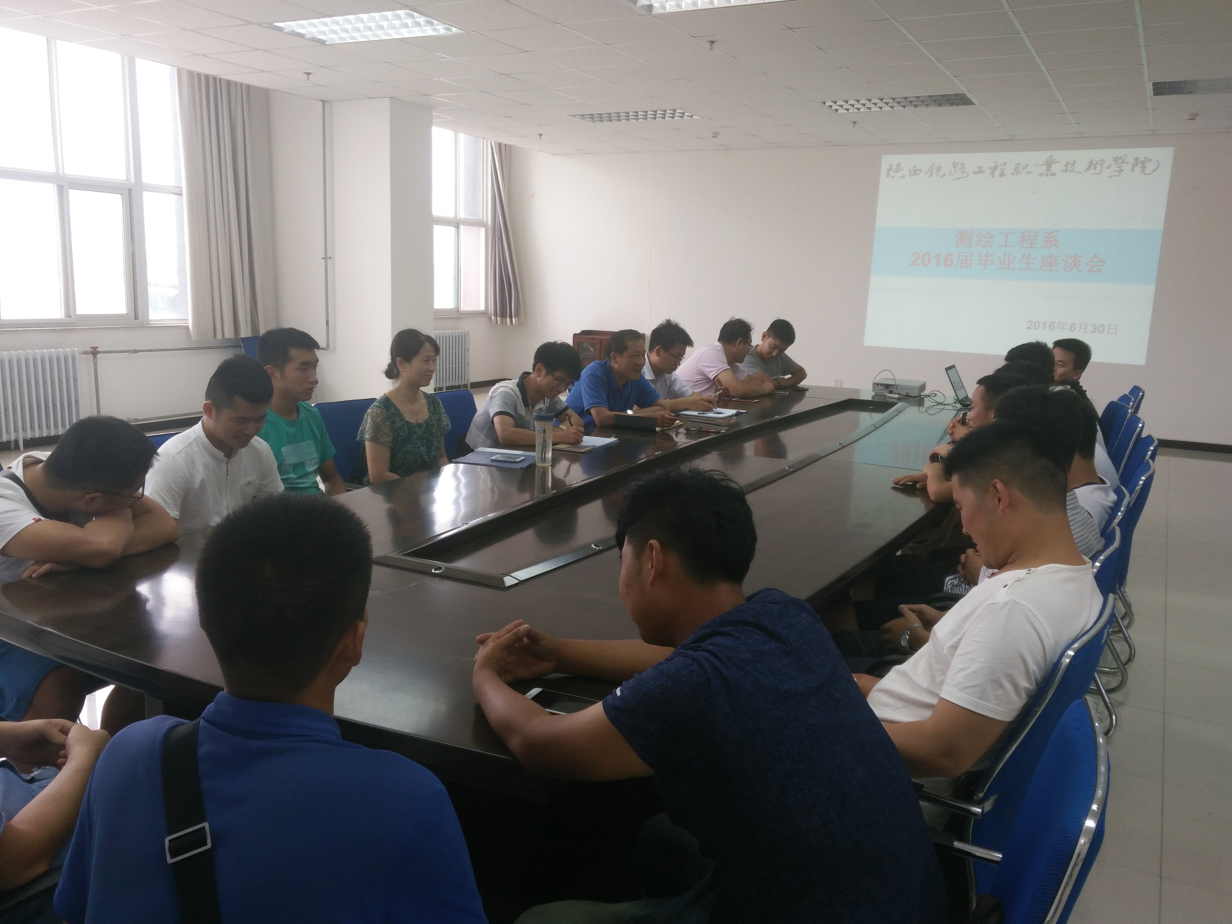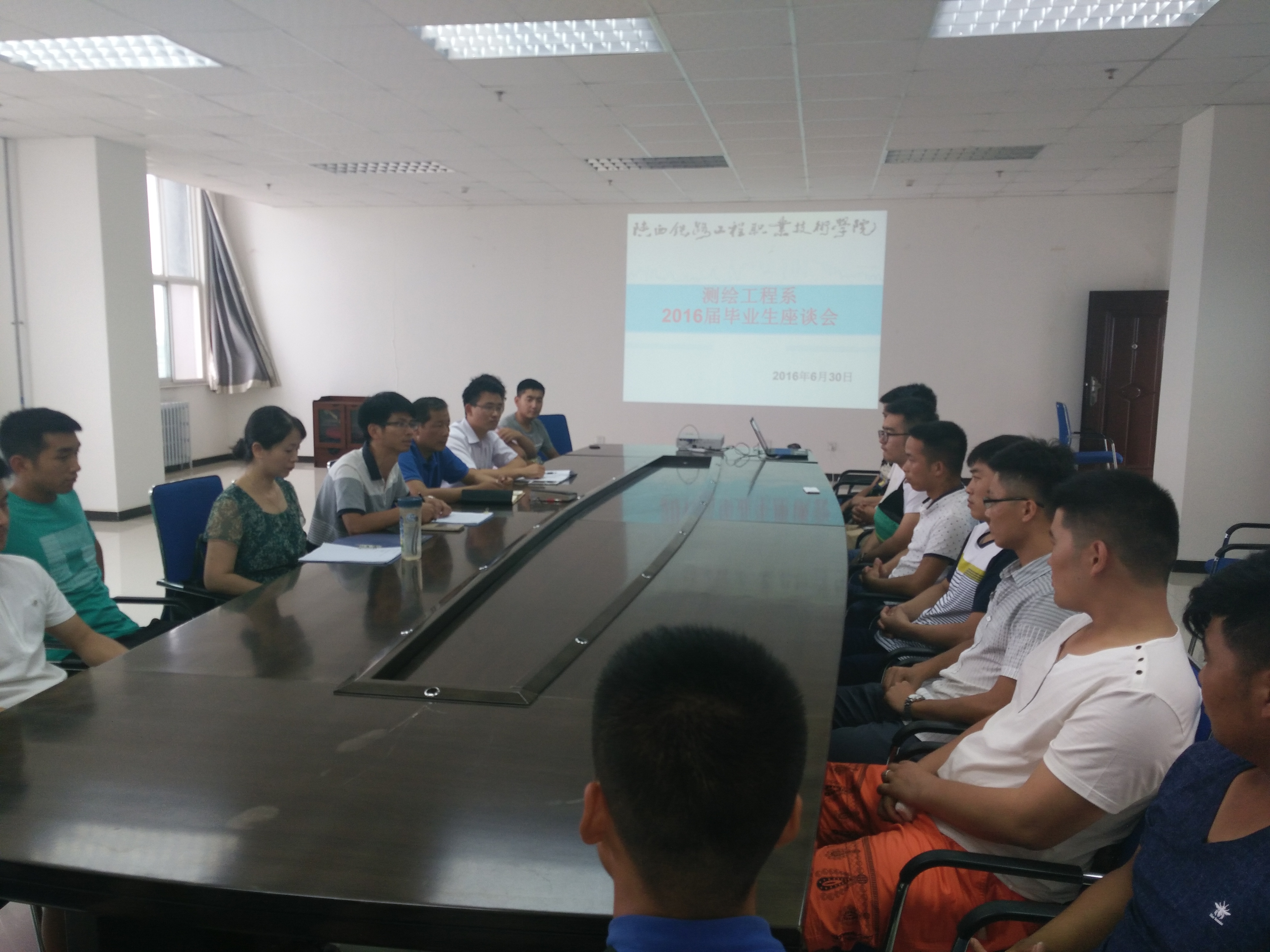 6月30日下午,测绘系在高新校区GA405办公室举行欢送2016届毕业生座谈会,测绘系党总支书记黄跃翔、办公室主任刘舜、办公室副主任冯上朝、毕业生辅导员及24名毕业生代表参加了座谈会,座谈会由办公室副主任冯上朝主持。