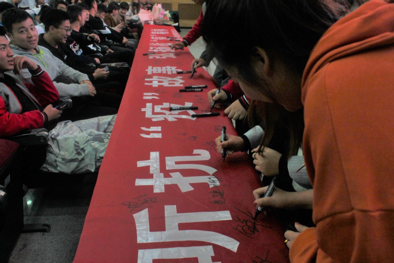 第三阶段,为了表示公司师生致敬英雄,奋勇向前的决心,报告会后举行了横幅签字仪式,签字结束后,师生与援鄂护士代表合影留念。