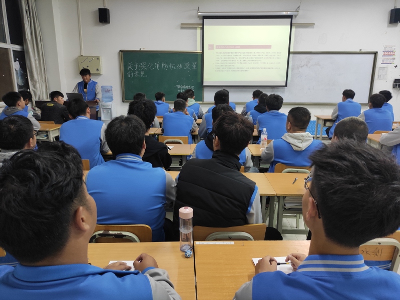 会上,各班团支书用PPT从向团员们介绍了这次团会的主要内容,一“总体要求:坚持问题导向、源头治理,坚持简政放权、便民利企,坚持放管并重、宽进严管,坚持公开透明、规范有序”,二“保障措施:加强组织领导,强化协同监管,完善法律法规,抓好督促落实”,三“主要任务:取消消防技术服务机构资质许可,第二个重点:思想政治受洗礼,放宽消防产 品市场准人限制,实行“双随机、一公开”监管,严格限制处罚自由裁量权,实行消防执法全程监督,推行消防监‘一网通办’,强化火灾事故倒查追责,严肃消防执法责任追究,严禁消防人员及其近亲属违规从业,消防部门与行业协会、中介组织彻底脱钩,优化便民利企服务”