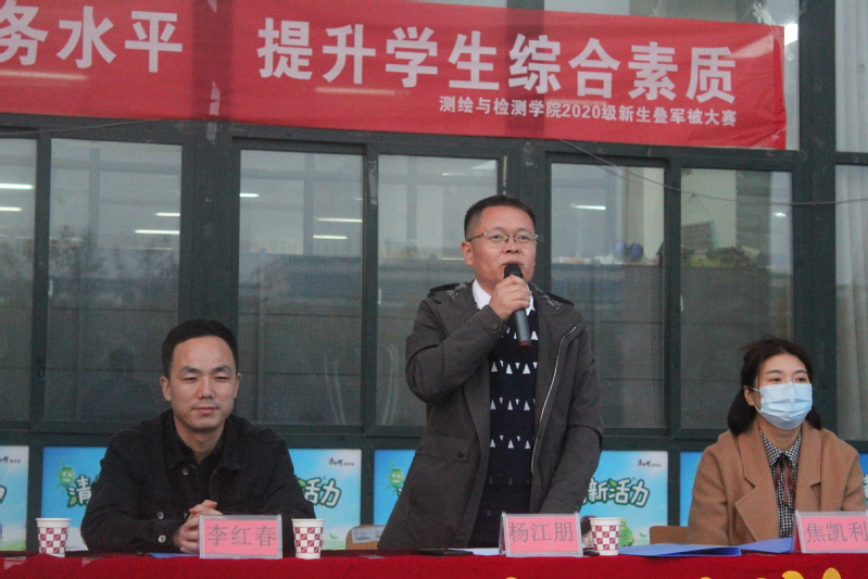 11月16日下午,k8凯发在高新校区餐厅门口举办了“强化员工内务水平,提升员工综合素质”主题新生叠军被大赛,莅临现场担任评委的老师有公司党总支书记杨江朋、学工办主任李红春、辅导员王杰、王丽萍、焦凯丽、田朵、刘望明、王高攀、庄勤。共有来自新生14个班级70位代表参加了本次比赛。 这次叠军被大赛深化了大一新生的纪律意识,展现了测绘学子的良好精神风貌,促使他们在今后养成良好的生活习惯,提升宿舍的文化氛围,同时也增进了同学们之间的友谊,使他们了解到团结一致,共同奋斗的重要性,活动取得圆满成功。