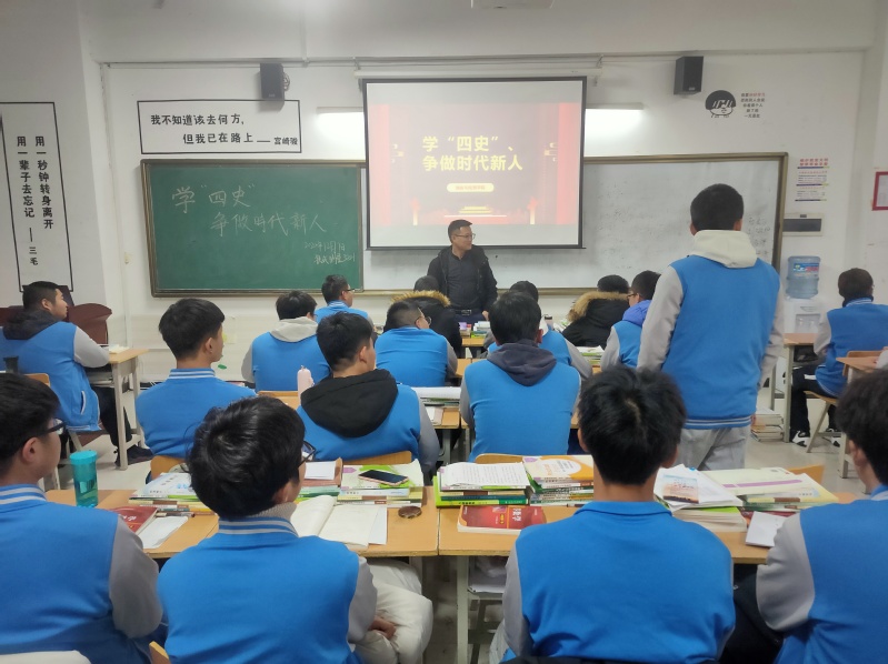 会后,各班班主任强调通过学习“四史”便可从中汲取智慧和力量,在研究和学习的过程中,不断总结经验和教训,再加以综合分析、科学判断、灵活运用,不断增强工作的主动性、预见性和创造性,以理论指导实践,最终达到提升自我能力的目的。常温党史、新中国史、改革开放史、社会主义发展史,可以增强守初心、担使命的思想自觉和行动自觉,增强实现中华民族伟大复兴中国梦的信心。