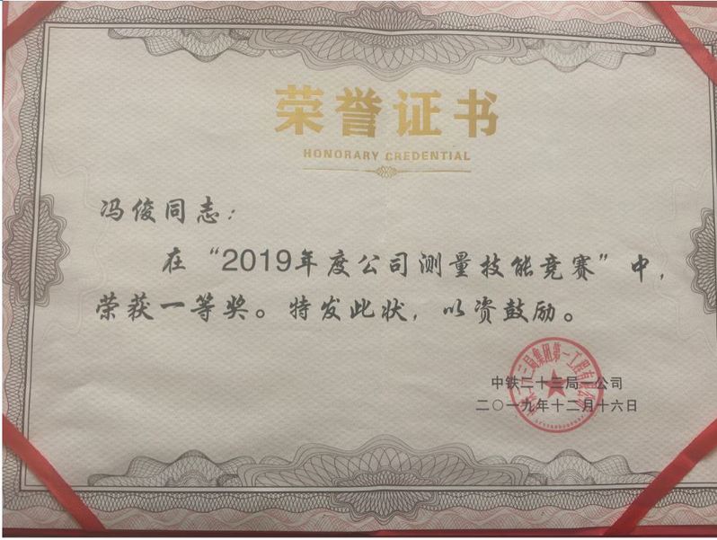 冯俊,男,测绘工程系测量3142班毕业生,现在在中铁二十三局第一工程有限公司工作,现参建国家高速公路榆蓝线延长至黄龙高速公路。2019年10月至今,担任中铁二十三局第一工程有限公司延黄高速公路项目8分部测量班长。