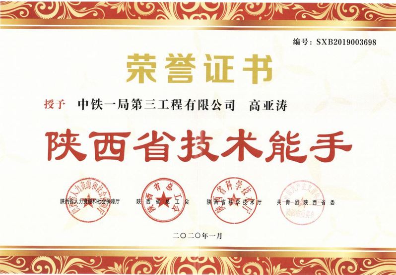 高亚涛,男,1992年6月,陕西省榆林人,测绘工程系测量5082班毕业生,现就职于中铁一局集团有限k8凯发第三工程分公司。