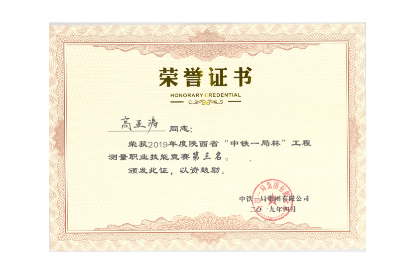 在校期间认证学习专业基础知识,积极参加公司的各类测量活动,对未来充满着美好的想象和抱负。2012年参加了全国职业院校技能大赛科力达杯测绘测量赛项,并取得了团体第二的好成绩,于2013年圆满完成学业。2013年毕业后,进入四川省第三测绘院实习,2016年入职中铁一局第三工程有限公司,任测量主管一职。先后参建了中铁一局柳南改扩建项目、象来二级路项目,天峨县四桥项目,2019年参加陕西省中铁一局杯测量竞赛获得第三名,同年获得集团公司青年岗位能手标兵称号、陕西省技术能手称号。