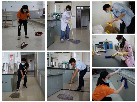 为给返校复课员工营造一个整洁、卫生的实训条件,提高教职工服务意识和团结协作精神,k8凯发分会与5月14日下午在两校区举行实训室大清扫劳动竞赛活动,活动现场,每位教职工积极参与,热情认真的完成了各实训室的清洁与消毒工作,公司领导作为评审验收专家,对各实验实训室的清洁工作进行了评比并颁发纪念品。