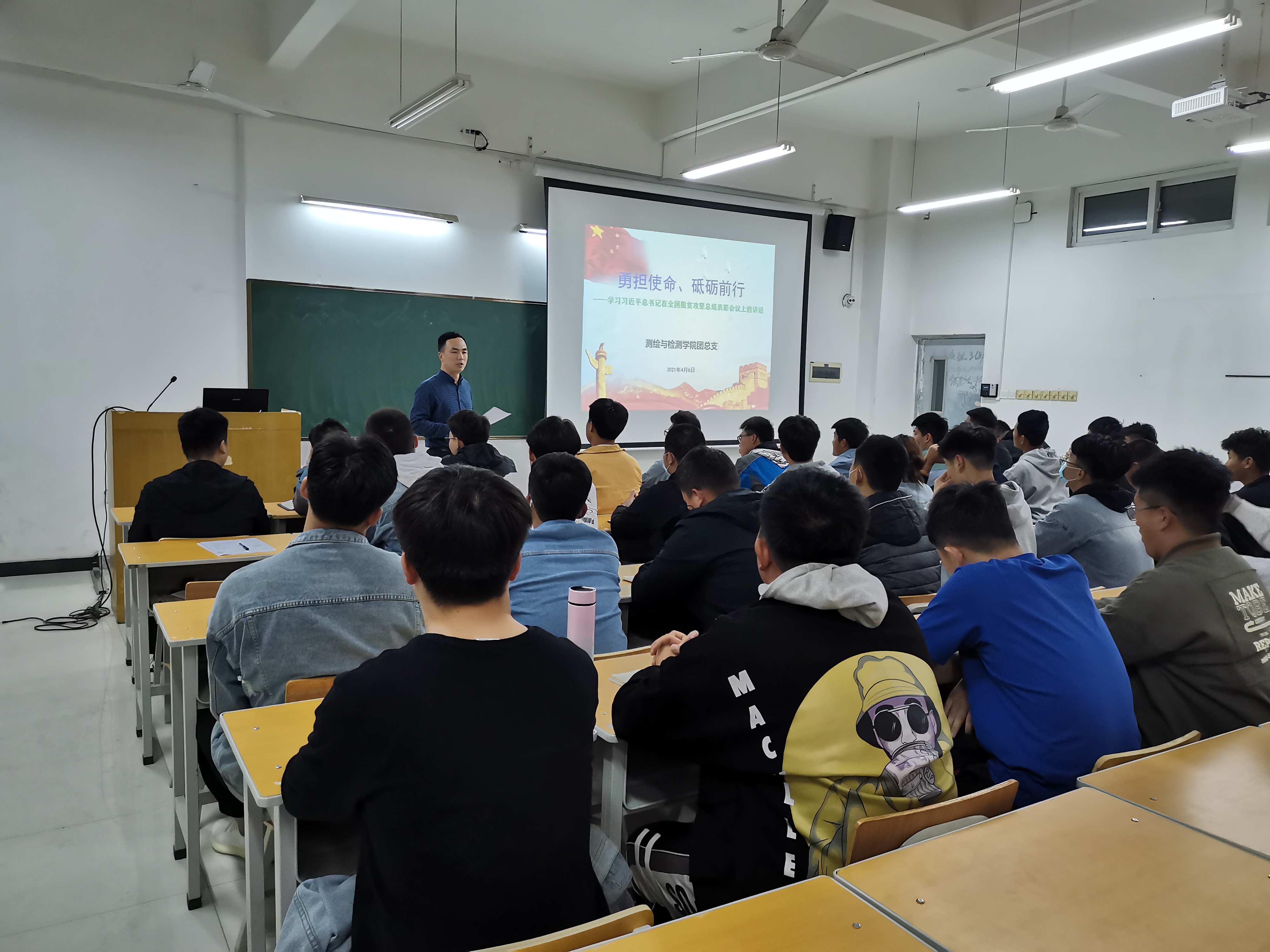4月7日晚,公司团总支组织全院团干部在新校区GB425教室召开主题团课学习会,本次团课由公司团总支书记李红春老师主讲,题目为《勇担使命、砥砺前行——学习习近平总书记在全国脱贫攻坚总结表彰会议上的讲话》。 学习会上,李红春带领全体团干部一起学习了习近平总书记在全国脱贫攻坚总结表彰会议上的讲话全文,对于讲话要点进行了深入解读,勉励大家以全国优秀的扶贫干部为榜样,牢记使命,树立远大志向,认真学习,踏实工作,为国家发展和社会繁荣早日贡献更大的力量。(文| 李红春 图| 李红春)