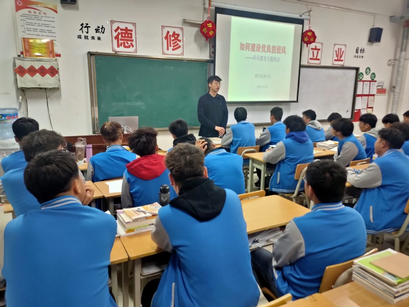 会上,各班班主任以PPT的形式从舵手是方向、团队是核心、文化是灵魂、学风是关键、感情是纽带五个方面向员工们讲解了如何如何建设优良班风,同时还有宿舍卫生,教室卫生,以及运动会注意事项。建设良好的班风要具有创造力、良好的人际关系、热情、优秀的学习成绩、责任心、执行力强、奉献意识这六中特质。要有核心意识、明确的职责与合理分工、团队协作的精神,这些对建设良好的班风有着重要的意义。公司非常重视班级、宿舍卫生,每周都会进行大检查,并评选出优秀宿舍。本周将举行运动会,各班班主任强调:“友谊第一,比赛第二”。同时员工们要努力拼搏,为班级争光,注意运动时的安全。