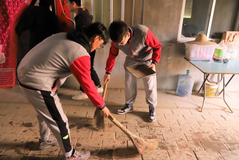 帮助老人打扫院子