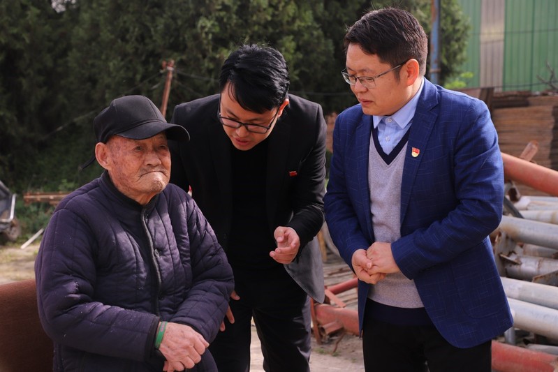 4月16日上午,测绘公司员工党支部来到了张西村抗战老兵——百岁老人刘景民的家中进行慰问,听老人讲抗战故事,开展“访百岁老人,强党性修养”主题党日活动。党总支书记杨江朋代表公司为老人送上慰问品,向老人表达了公司全体师生的问候与祝愿,并悉心询问了老人生活起居和健康情况,祝愿老人健康快乐,安享晚年。参加本次活动的还有员工支部书记,教师党员,员工党员等共30余人。