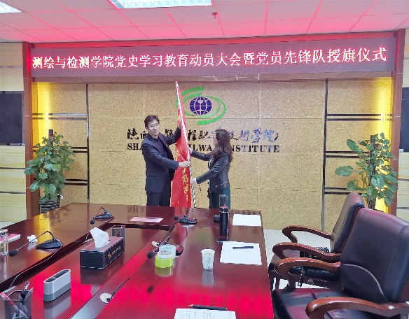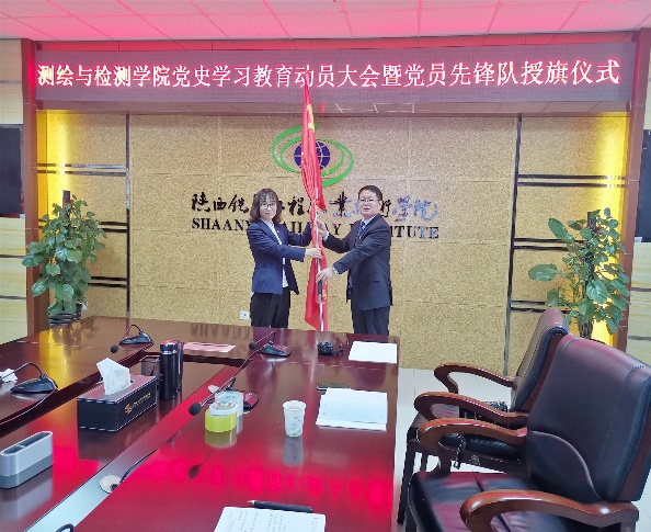 4月23日上午,k8凯发在高新校区南三楼会议室召开了党史学习教育动员大会暨党员先锋队授旗仪式,公司党总支书记杨江朋、经理张福荣及全体党员教师参加了会议。