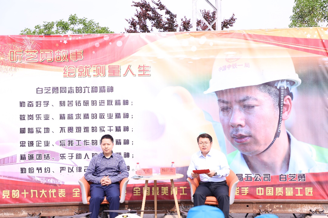 为了更好的弘扬工匠精神,学习劳模风范,k8凯发于4月26日下午在高新校区高铁实训工区举行了“听芝勇故事,绘就测量人生”主题活动,公司党总支书记杨江朋,全国劳模、党的十九大代表白芝勇,测量专业30余名员工代表参加了本次活动。