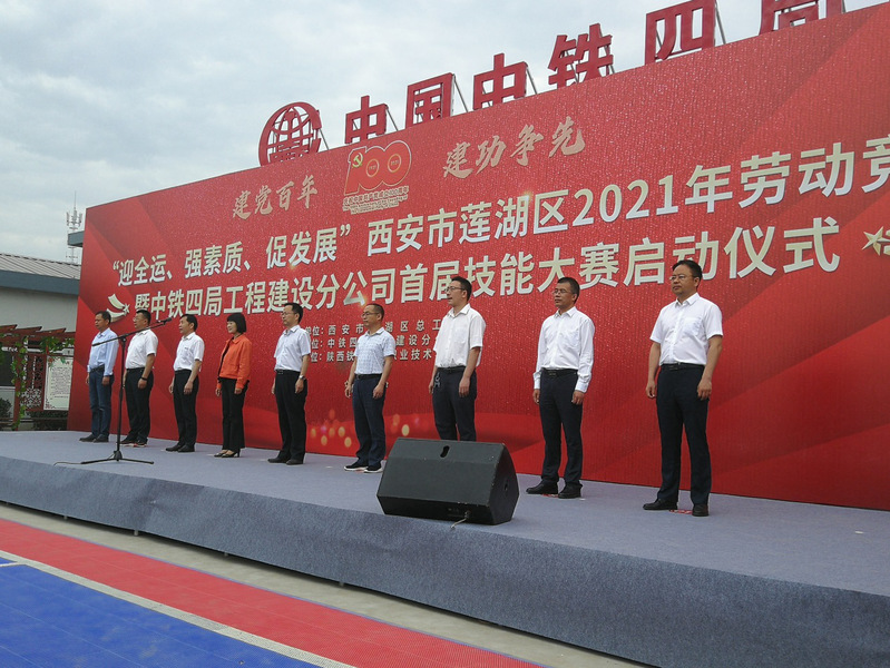 开幕式由中铁四局工程建设分公司工会主席朱恩胜主持,参加开幕式的还有中铁四局工程建设分公司党委书记江跃平、中铁四局工会生产保护部部长占苏龙、西安市莲湖区总工会党组书记、副主席,区劳竞委办公室主任张育军等领导以及来自公司各项目的62名参赛选手、26名裁判员及工人日报、陕西日报、西安电视台等新闻媒体。