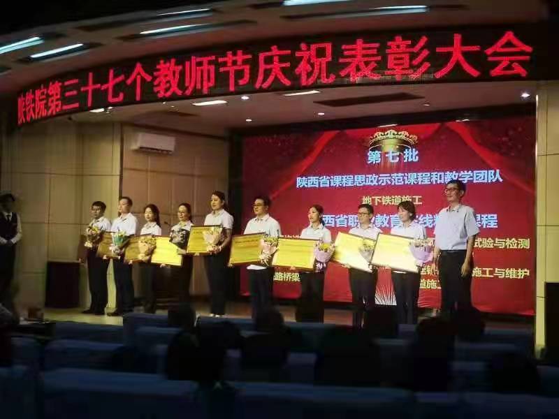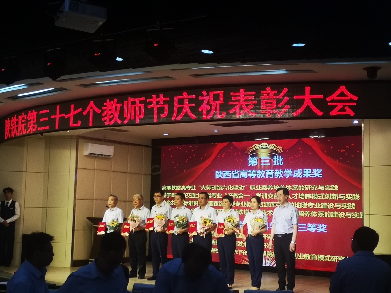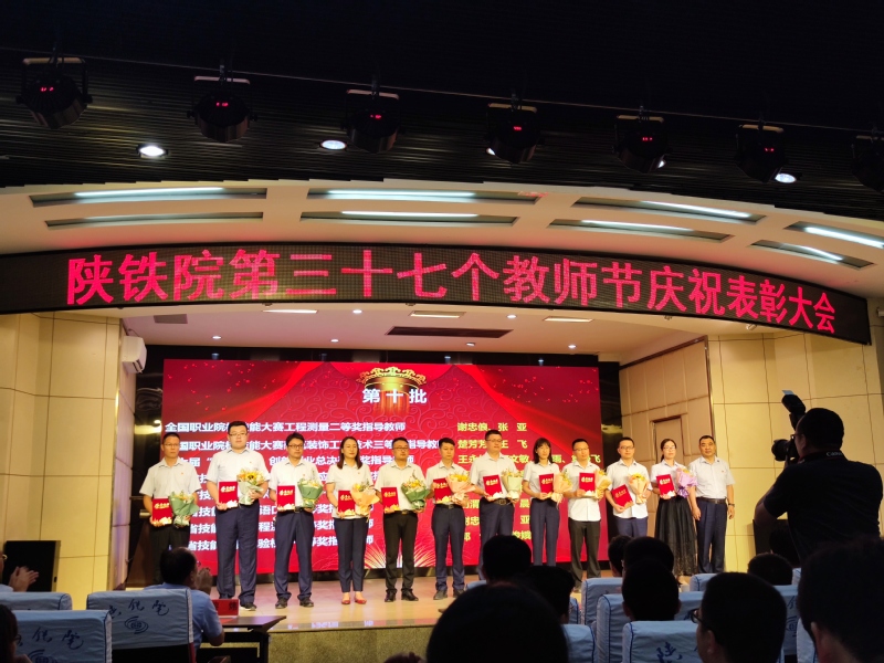 昨日,公司在临渭校区学术报告厅为庆祝第37个教师节和表彰公司荣获各类奖项的优秀教师举行了庆祝表彰大会。公司有15位教师取得13项成果受到表彰,分别是:何文敏(陕西省高等公司科学技术三等奖)、田倩(2020年陕西省职业教育优秀教材二等奖(GPS测量技术与应用))、魏瑶,田倩,刘海弯(2020年全国职业院校教学能力比赛一等奖)、赵丽萍(2020年陕西省职业教育在线精品课程(土木工程材料试验与检测)团队负责人)、吴迪(获批国家“无人机摄影测量”(中级)1+X证书)、宁波(获批国家“建设工程质量检测”(中级)1+X证书)、张亚(2021年全国职业院校技能大赛工程测量赛项二等奖指导教师代表)、王永维(第六届中国国际“互联网+”老员工创新创业总决赛国家级铜奖指导教师)、谢忠俍(2020年陕西省高职院校技能大赛一等奖(工程测量赛项)指导教师)、郭博,郭俊娥(2020年陕西省高职院校技能大赛一等奖(试验检测赛项)指导教师)、夏雨(2020年中国国际“互联网+”老员工创新创业大赛(陕西赛区)金奖指导教师)、袁曼飞(2021年公司教学能手)、王栋(教坛新秀),在公司二级公司中获奖项目及人数位居第一。体现了公司教师努力拼搏,敢为人先的精神。(文|刘竞怡 图|李炳良)