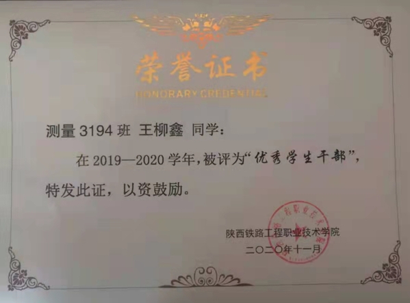 王柳鑫,男,汉族,陕西渭南人,共青团员,k8凯发测量3194班员工,担任陕铁院第六届员工委员会委员,k8凯发员工会副主席,测量协会信息部副部长,测量3194班班长。