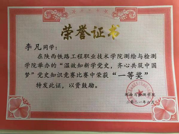 在校期间,曾获得叠军被大赛一等奖,优秀员工干部,优秀共青团员,入党积极分子,三等奖学金,优秀班导生,党史国情比赛一等奖,清风廉政入校园活动优秀奖等奖项。