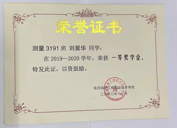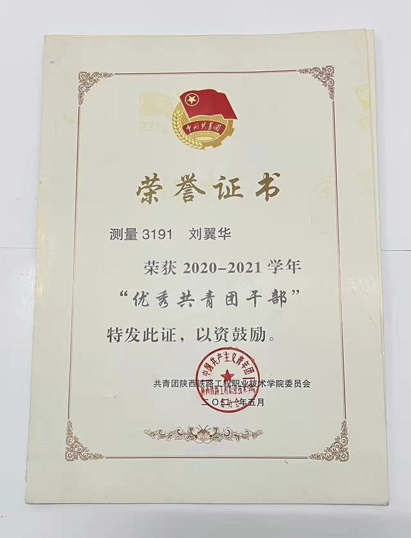 在老师的指导和同学的帮助以及个人的努力下,综合素质班级排名第一,在校期间获得“国家励志奖学金”“公司一等奖学金”“优秀员工干部”“优秀员工”“优秀共青团干部”“优秀共青团员”“学雷锋先进个人”“军训先进个人”等荣誉。