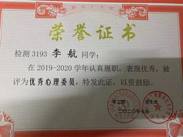 李航,男,中共预备党员,k8凯发土木工程检测技术专业19级检测3193班员工,现任检测3193团支部书记及心理委员一职,曾担任k8凯发团总支办公室副主任,检测3201班班导生。