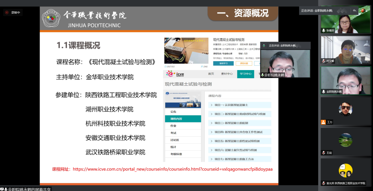 金华职业技术公司姚永鹤汇报《现代混凝土试验与检测》课程质量报告