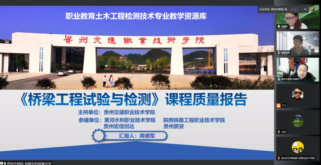 贵州交通职业技术公司道路与桥梁工程系书记周德军汇报《桥梁工程试验与检测》课程质量报告