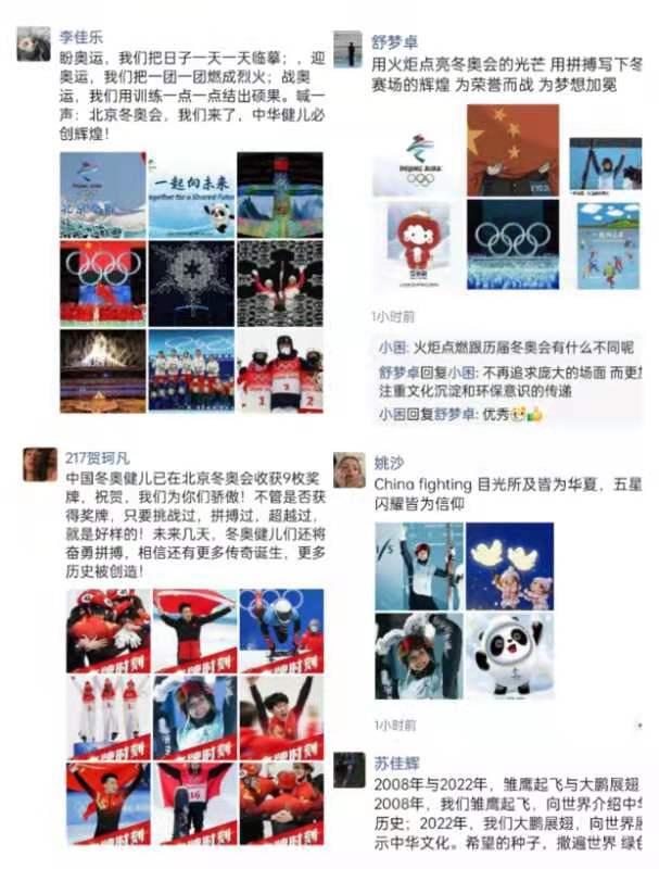 第二是线上开展以2022北京冬奥为主题的活动,形式包括观看冬奥赛项、手绘北京冬奥、学习冬奥知识、分享冬奥精彩瞬间等,通过学们在朋友圈分享的内容有效融入春节、元宵、中国风、奥林匹克精神等元素,有助于弘扬伟大的奥林匹克精神和伟大的中国精神,锻炼强健体魄、练就过硬本领,为实现中华民族第二个百年奋斗目标贡献青春力量。