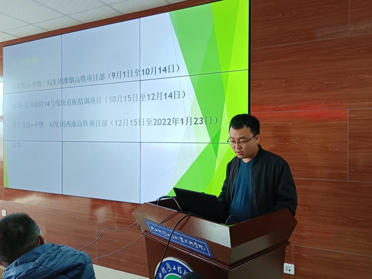 会上,公司教师黎飞明、徐欢、贺国伟、岳军红、王浩龙5位老师先后汇报了自身在现场锻炼及技术服务期间所从事的工作、在锻炼期间的收获、感悟等。