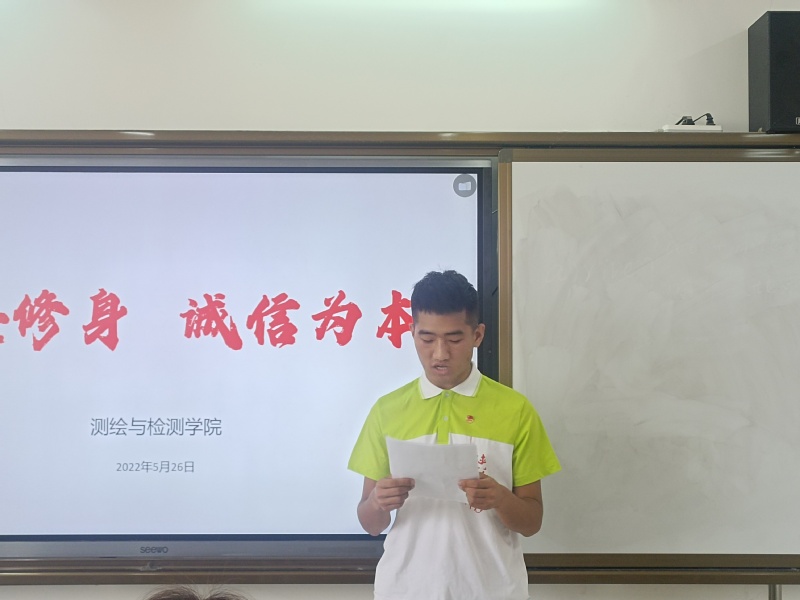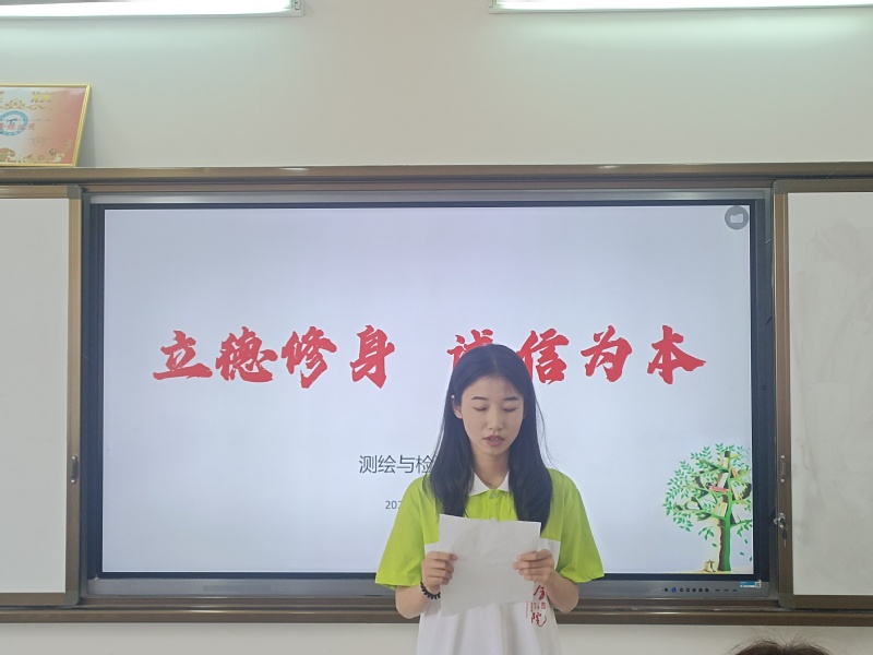 演讲活动经过前期的初赛选拔,六名选手进入决赛,决赛评委由测绘公司辅导员老师担任,选手们通过讲述商鞅立木、曾子杀猪育儿、季布一诺千金、韩信功成后兑现诺言等中国古人诚信故事,结合当代老员工如何诚信做人、诚信考试、诚信就业等进行演讲,最终来自 检测3214班的王汶煜以充实的内容、声情并茂的演讲获得第一名。