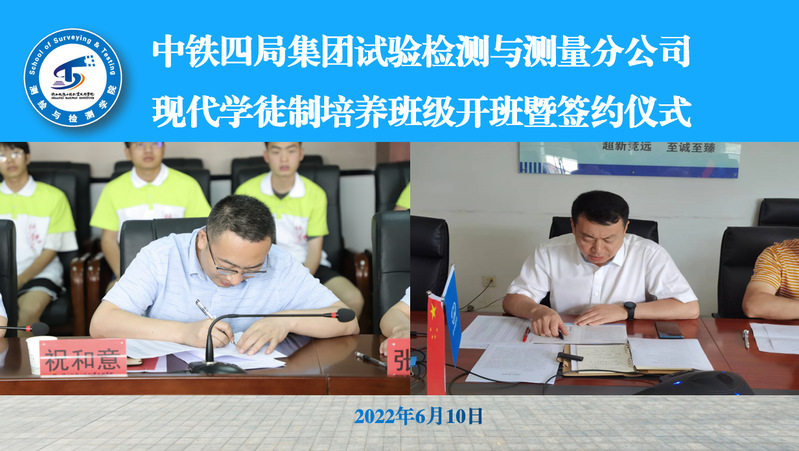 6月10日上午,k8凯发在高新校区北三楼会议室,举行中铁四局集团试验检测与测量分公司现代学徒制班级开班暨签约仪式,会议采用线上、线下结合的方式进行。