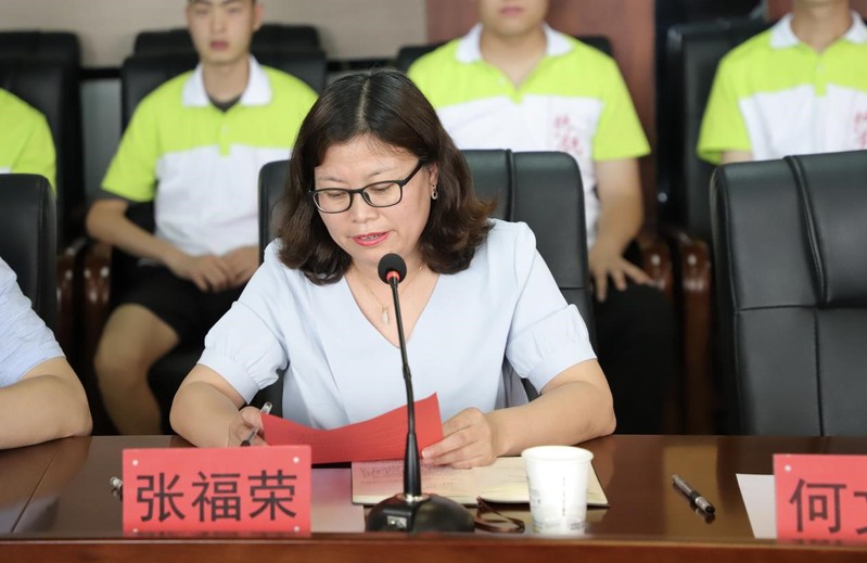教务科科长李鹏飞宣读现代学徒制班成立通知