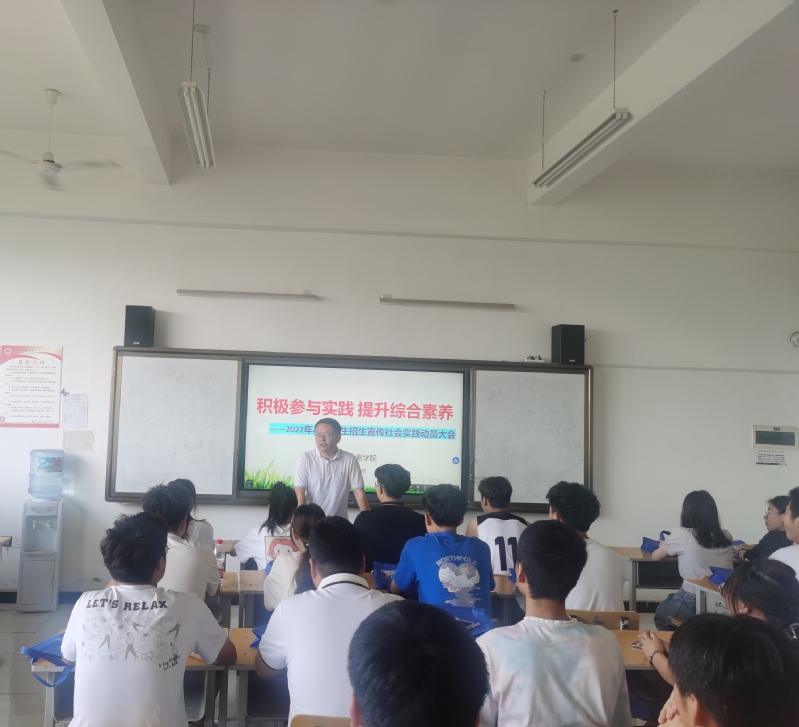 会上, 党总支书记杨江朋老师首先向同学们深入讲解了假期社会实践对于员工综合素养提升的积极意义,分析了暑期招生宣传工作对于集体发展、个人成长的重要作用。然后,从公司2022年招生政策、省内外录取指标分布、招生宣传主要内容、招生宣传工作纪律、招生宣传注意事项等方面,做了全面培训。最后,杨江朋书记体招生宣传工作人员提出三点要求:一是要成为招生工作专家,把握形势变化,吃透招生政策;二是要增强责任感和使命感,当好公司的宣传员和讲解员,展现良好的精神风貌;三是要强化安全意识,认真落实疫情防控要求。