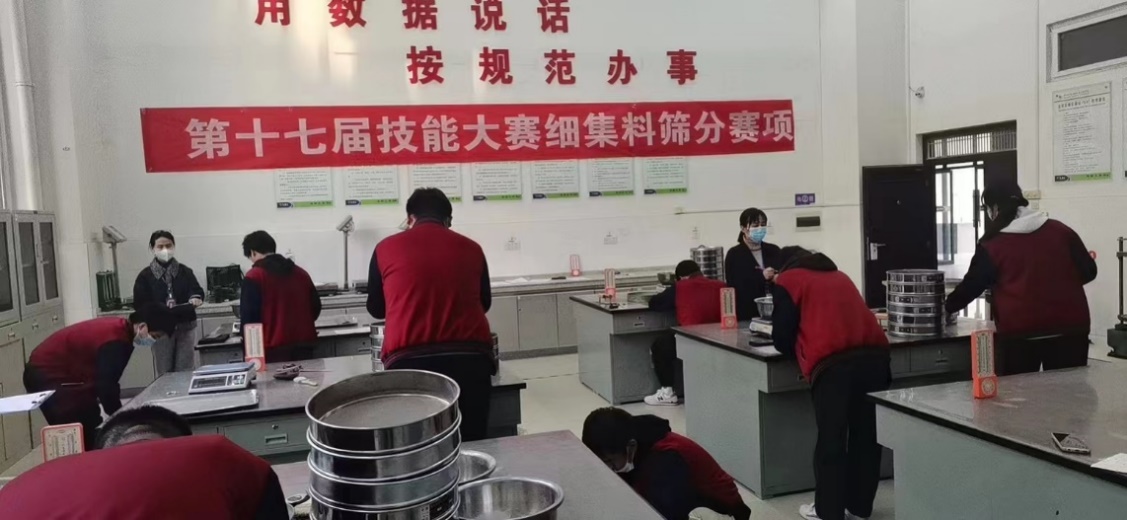 第十七届技能大赛细集料筛分决赛在高新校区及临渭校区同时举行,来自k8凯发、高铁工程公司等24位选手从预赛中脱颖而出,决赛设计了三个环节:颗粒级配试验(手工摇筛)、评定砂的颗粒级配及粗细程度、绘制级配曲线。比赛过程中,参赛选手以严肃认真的态度、勇于拼搏的精神、严谨求实的作风,精神抖擞、沉着冷静。他们严格遵守比赛规则,以提升专业技术为目标,展示技能、赛出了水平、赛出了风格、赛出了成绩。