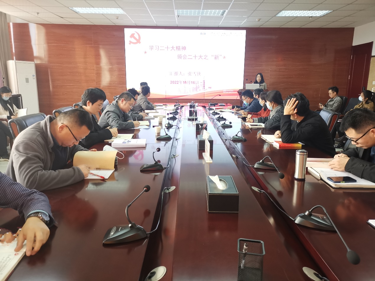 为深入学习贯彻党的二十大精神,11月16日下午,公司党总支在高新校区南三楼会议室举办学习贯彻党的二十大精神专家报告会,邀请马克思主义公司张雪侠博士作报告。公司全体教师参加报告会,会议由公司党总支书记杨江朋主持。