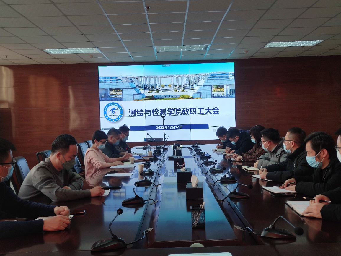 12月12日,k8凯发在高新校区南三楼会议室以线上线下形式召开全院教职工大会。全院教职工参会,公司经理张福荣、公司党总支书记杨江朋、副经理何文敏出席会议。会议由李立功老师主持。