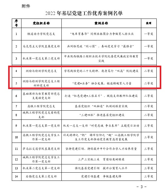 近日,公司公布了2022年基层党建工作优秀案例评选结果,公司推荐的2个党建工作案例分别获二等奖。分别是公司党总支书记杨江朋报送的《学思践悟党的二十大精神,躬身笃行“双高”院校建设》和工程材料党支部报送的《“党建+业务”融合发展,锻造铸魂育人力量》。