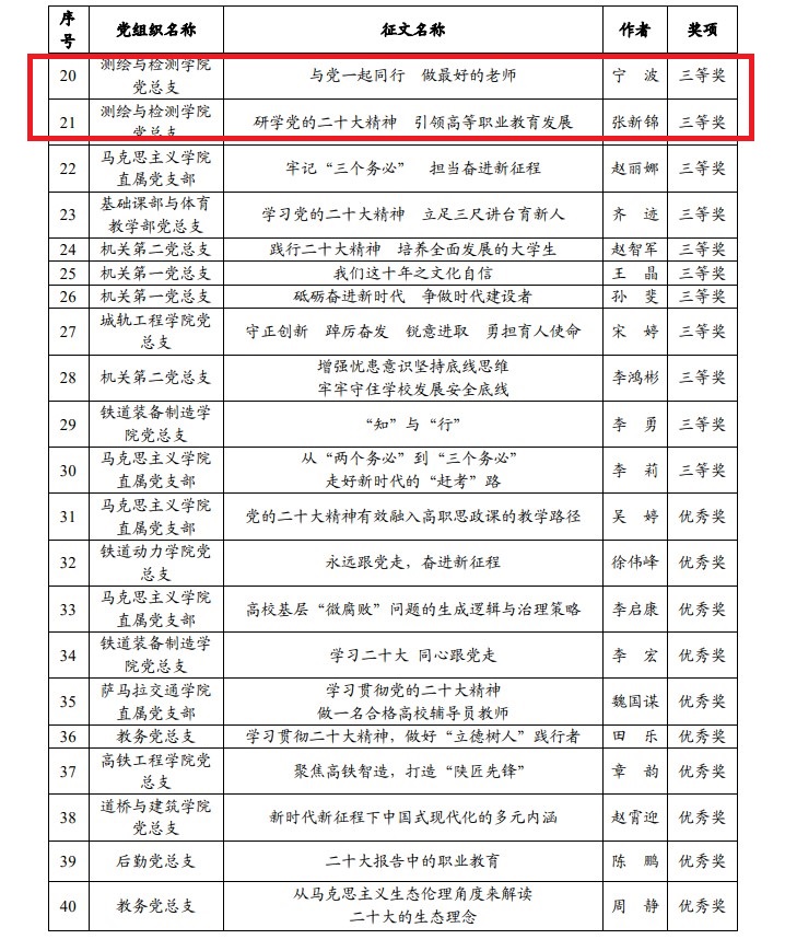12月22日,公司“学习党的二十大精神“征文活动获奖名单出炉。本次征文收到全校师生的105份作品,经专家评选出52篇优秀作品,成为全校上下兴起学习宣传贯彻党的二十大精神热潮的生动注脚。其中,公司师生积极参加,并获得教师组二等奖1项,三等奖2项,优秀奖2项,员工组获得二等奖2项,优秀奖7项。