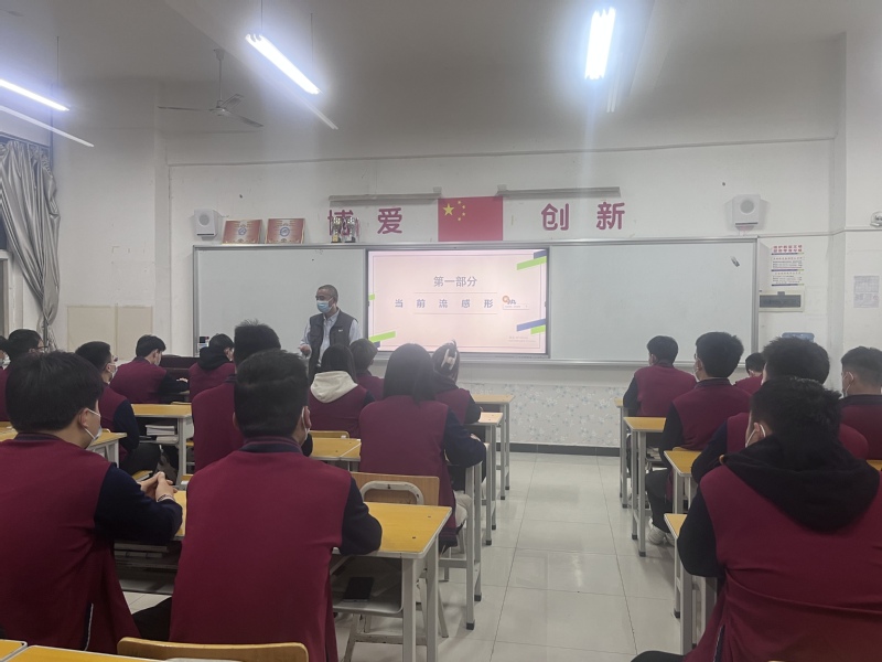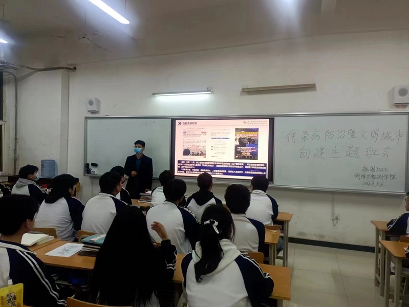 副董事长张学钢及公司处科级领导亲切地和班级同学交流当前的流感局势,向同学们介绍预防传染病的相关知识,从病原学原理讲到预防小妙招,并强调保持良好的个人卫生习惯是预防春季传染病的重要手段,主要预防措施就是要保持个人卫生,共同维护宿舍清洁,坚持体育锻炼提高自身免疫力等,总结出“四要三不”便于员工记忆,并通过真实案例,为员工讲解发热后的处理流程。最后,通过学习《共创全国文明城市 共享美好幸福生活 倡议书 》使得员工明白个人与文明城市建设的重要联系。经过全方位的讲解后,员工们对春季校园常见传染病和城市文明创建已经有了基本认识,同学们对如何从自身做起预防传染病和助力文明城市建设展开了热烈讨论,纷纷提出了自己的见解。