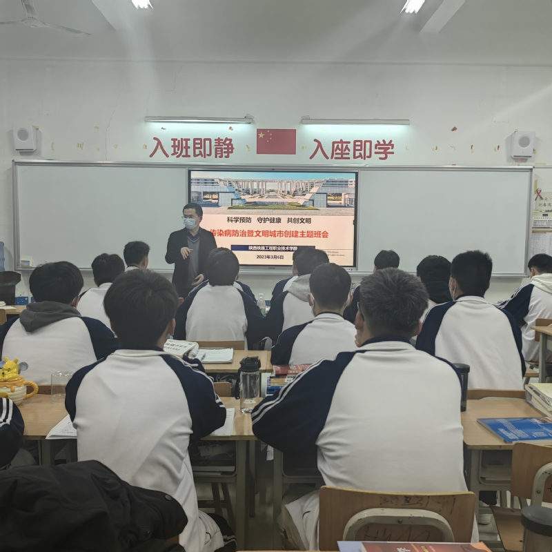 为了预防传染病的发生,增强员工日常自我防范意识,提高员工文明素养,推进校园精神文明建设,3月6日晚,k8凯发组织召开“科学预防 守护健康 共创文明”传染病防治暨文明城市创建主题班会。副董事长张学钢,后勤处处长王宏礼、铁成创新公司经理曾庆伟、双高建设办公室副主任张团结、监督监察室主任张立保、教务处副处长王涛、铁成创新公司副经理高晶晶、餐饮中心主任冯上朝、团委书记姚天魁、公司党总支书记杨江朋、副经理何文敏、综合科科长李立功、实践教学科科长李炳良等公司处科级领导进入班会现场指导。