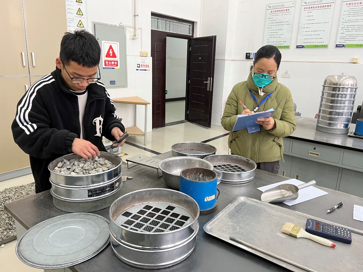 渭南市人社局领导巡考物理性能检验员石子压碎值试验实操考核