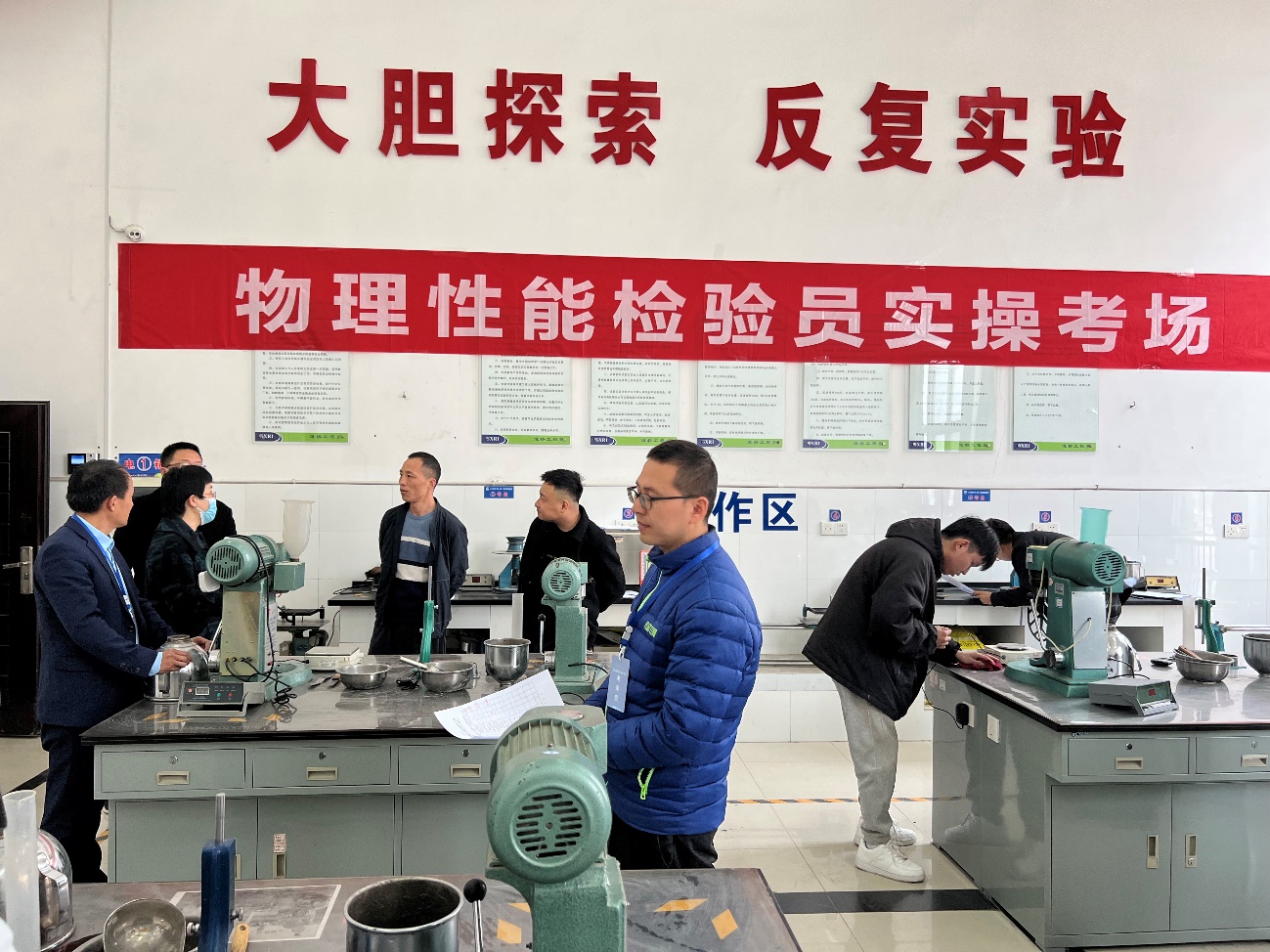 渭南市人社局领导巡考物理性能检验员水泥标准稠度用水量试验实操考核
