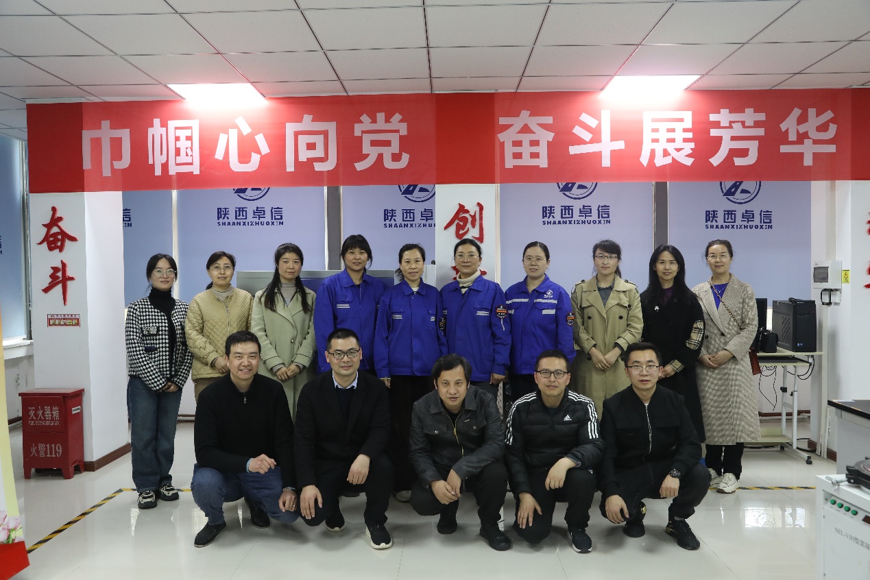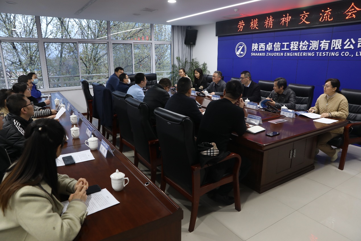 在陕西卓信工程检测有公司,陕西卓信工程检测公司工会主席张国勇对“蓝精灵女子班组”和“高峰劳模先进创新工作室”介绍;随后,蓝精灵女子班组组长吕脱颖和劳模高峰介绍了个人和集体事迹。测绘与检测党总支书记杨江朋介绍了党总支在党建示范创建等工作,工程材料党支部书记彭磊介绍了土木工程检测技术团队是陕西省五一巾帼标兵岗和支部在“党建+工匠精神”主题品牌党日创建、教师双带头人党支部书记工作室建设等方面工作。支部党员与“蓝精灵女子班组”和“高峰劳模先进创新工作室”成员就劳模精神和劳动精神展开了热烈讨论。会后,老师们参观了检测基地,并与全国技术能手高峰、吕脱颖等切磋了技艺。