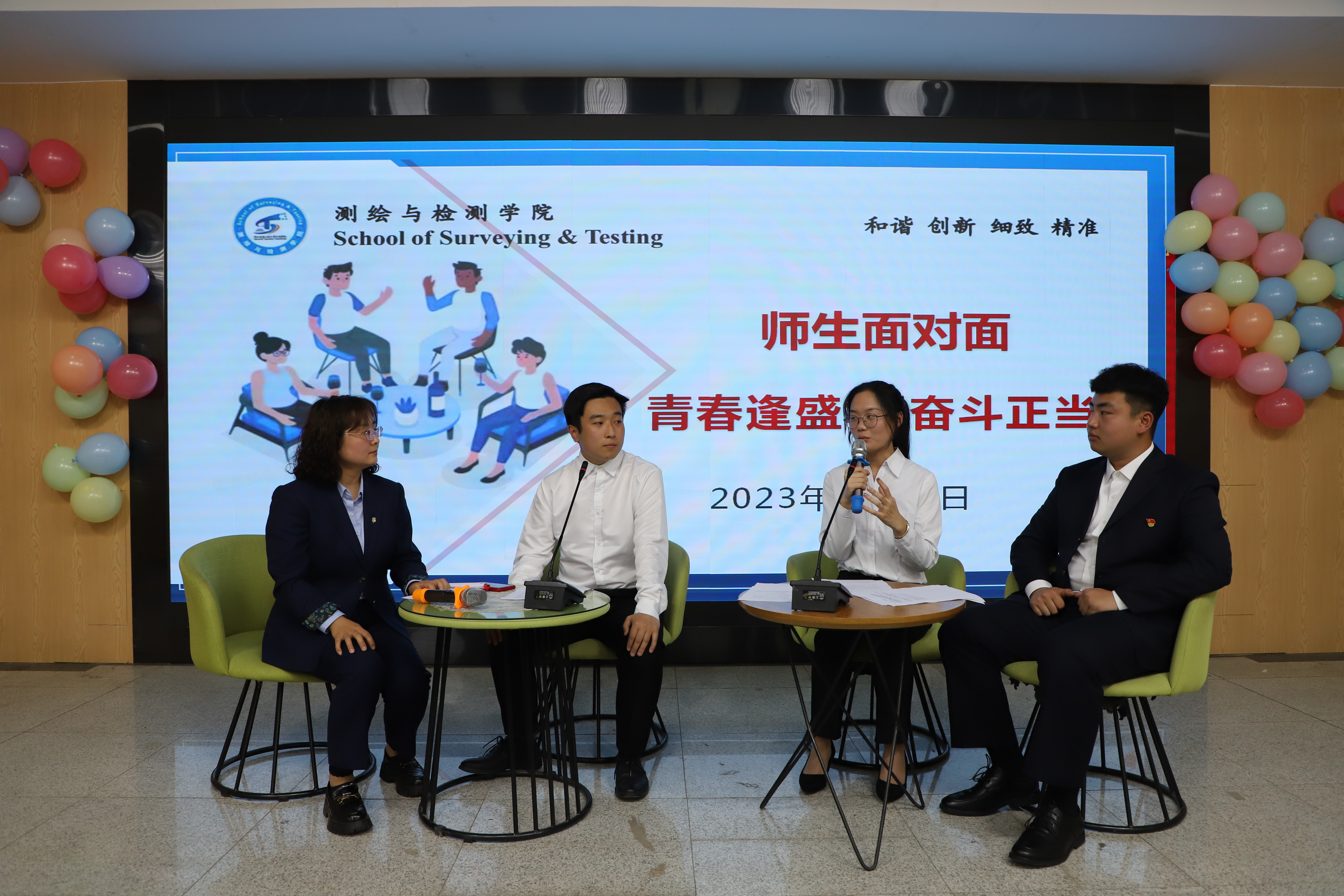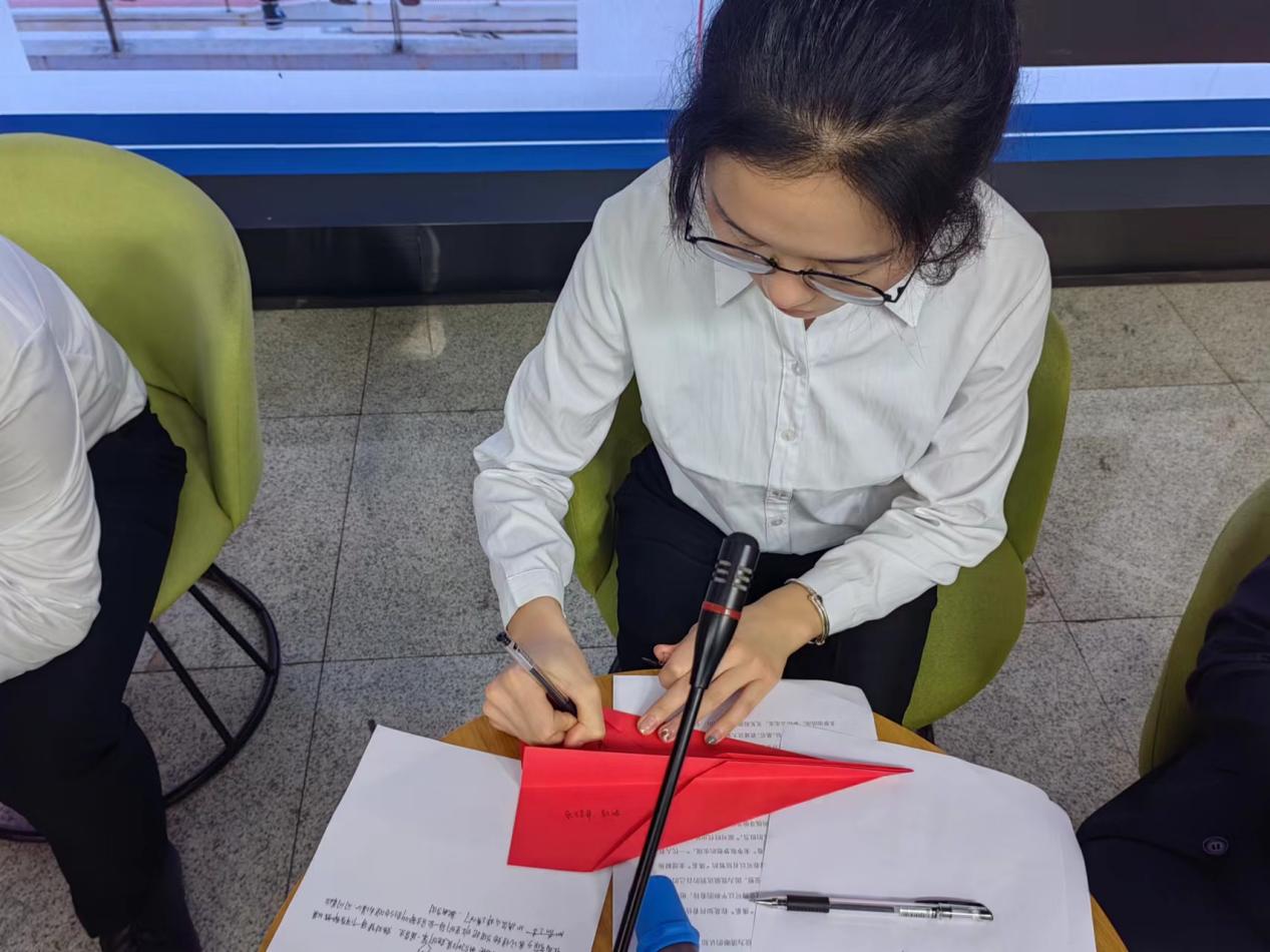 本次活动分为三个环节:首先由主持人辅导员田朵老师与公司国家奖学金获得者郭子童、挑战杯全国老员工学术科技作品竞赛国家级银奖获得者任梓源、公司十佳甘于奉献青春榜样刘润东等三名同学在台上展开师生面对面访谈,访谈内容涉及到员工良好学习习惯的养成、参加竞赛的经历分享、员工干部工作内容的介绍以及个人对当前网络热点话题的见解等方面。第二个环节是员工互动,台上台下相互提问,一起交流。第三个环节是优秀员工将自己的美好祝愿写在纸飞机上,放飞到观众席,传递祝福与期望。