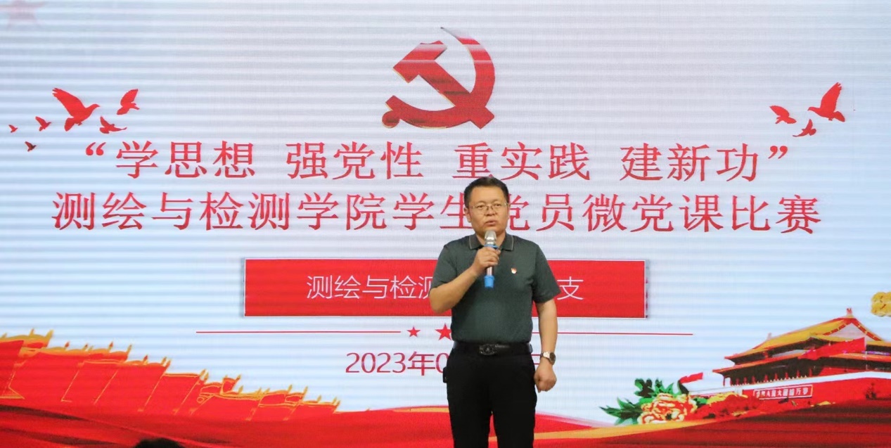 比赛结束后,李红春老师进行点评,他肯定了参赛选手的表现,从专业角度为同学们提出了授课意见,鼓励同学们在学习生活工作中充分发挥先锋模范带头作用。最后杨江朋书记进行总结讲话,他指出,本次活动举办的非常有意义,通过微党课注入“红色引领,培根铸魂”的理念,小课堂变身大舞台,他对全体党员提出三点建议:一是全体党员同志要提高认识,坚决做到先学一步、深学一层;二是学懂学透,要更加深入地去讲党课,凸出内容新意和亮点;三是讲述身边人、身边事,做到打动人、吸引人,讲出更加生动的铁院故事,勉励同学们再接再厉,切实把思想和行动统一到本次比赛主题上来,学思想、重实践、建新功。